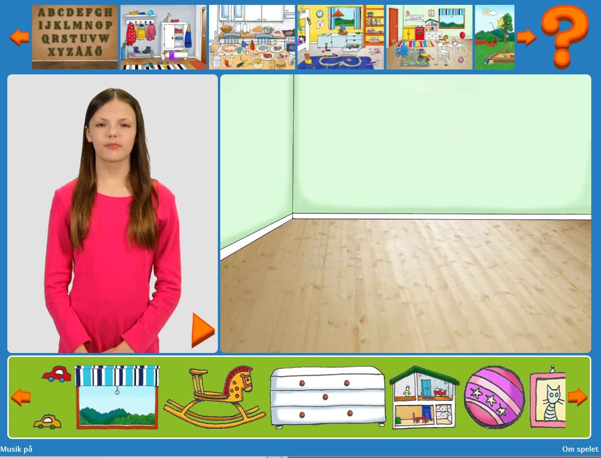 Kom med och dekorera hemmet på finlandssvenska teckenspråk! Du kan välja mellan sju olika platser i hemmet, både inomhus och utomhus. Din uppgift är att placera alla saker på sina rätta ställen. Vilka föremål ska…
