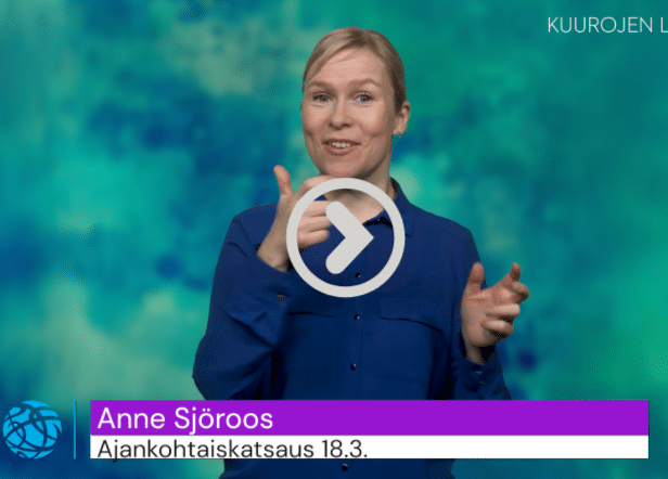Tämän viikon ajankohtaiskatsaus kokoaa yhteen viittomakielisen yhteisön ajankohtaisimmat uutiset. Järjestöt vaativat liikunnan saavutettavuuden turvaamista opetussuunnitelmissa, ja Viittomakielinen kirjasto on palkittu vuoden suomenruotsalaisena palveluna. Lisäksi kerromme Lasten huippukokouksesta, joka toi lapset ja asiantuntijat saman pöydän ääreen, sekä muutoksenhakulautakunnan ratkaisusta, jonka mukaan elokuvan tulkkaus voi kuulua tulkkauspalvelun piiriin.