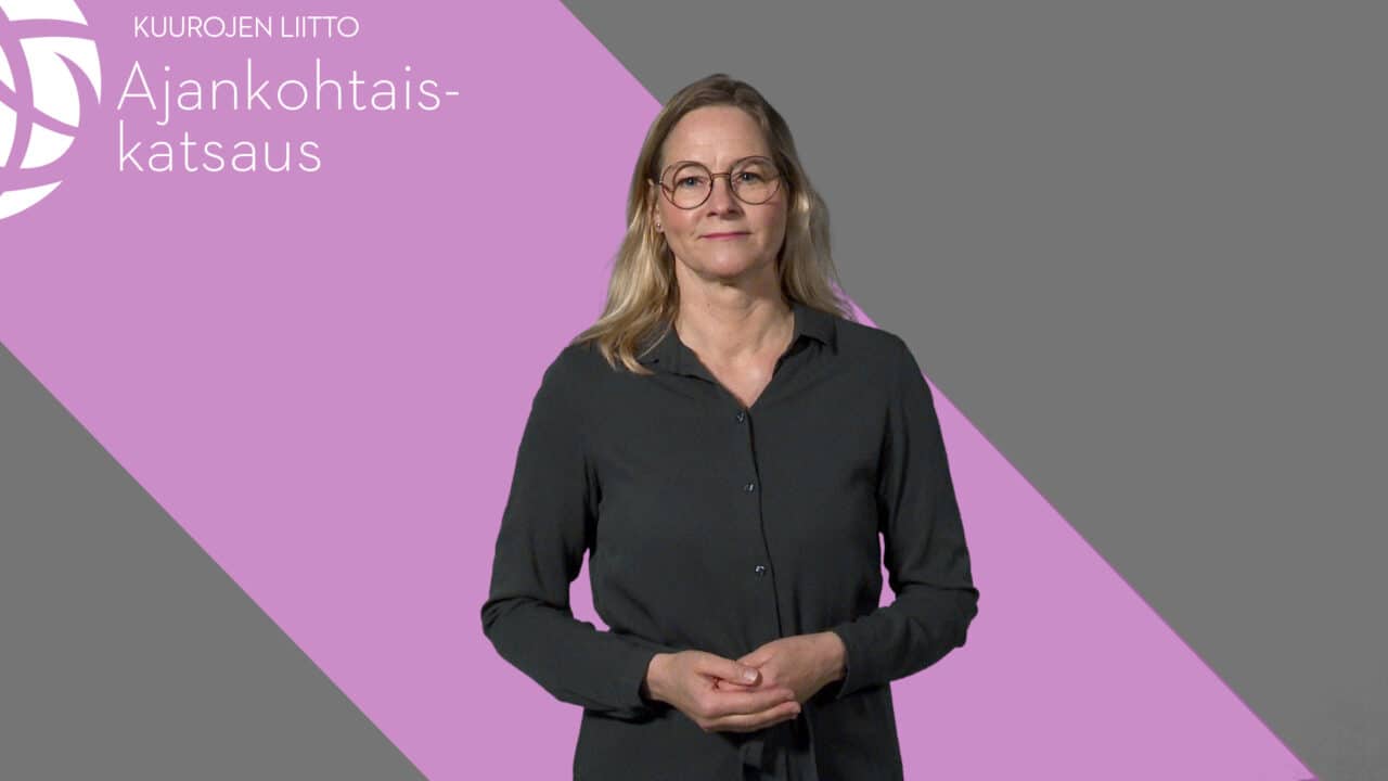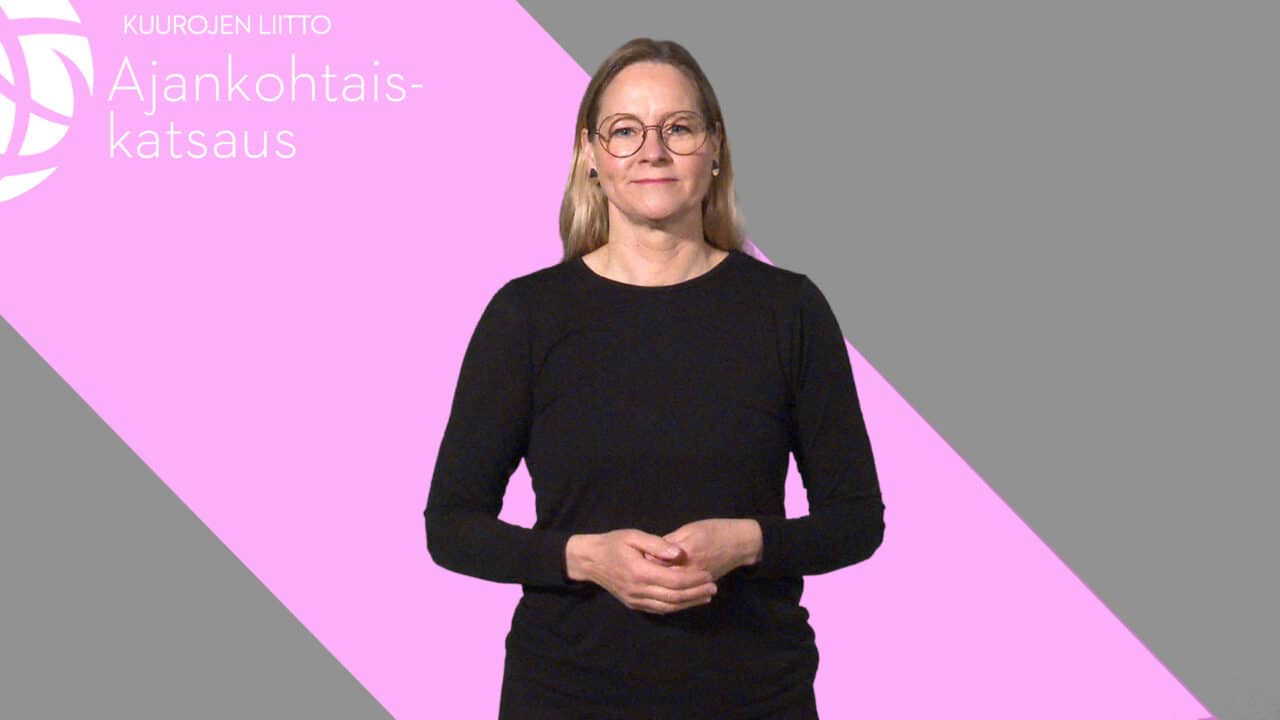 Tämän viikon ajankohtaiskatsaus nostaa esiin sekä yhteiskunnallisia että yhteisöllisiä aiheita. Mukana ovat Kuurojen Liiton lausunto viittomakielen kielitutkinnosta, kuuleminen totuus- ja sovintoprosessin laista sekä oikeusasiamiehen päätös Kelan tulkkauspalvelusta. Lisäksi kerrotaan Porvoon nuorisopäivistä, uusista e-Kaveriryhmistä ja Viittomakielisen kirjaston Maijan tutkimusmatka -sarjasta.
