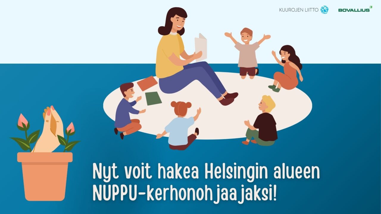 Oletko vähintään 18-vuotias ja haluatko työskennellä viittovien lapsiperheiden parissa? Haluatko olla mukana luomassa ohjelmaideoita ja hauskoja kohtaamisia viittoville lapsiperheille? Jos vastasit kyllä, hae kerhonohjaajaksi NUPPU-projektiin!