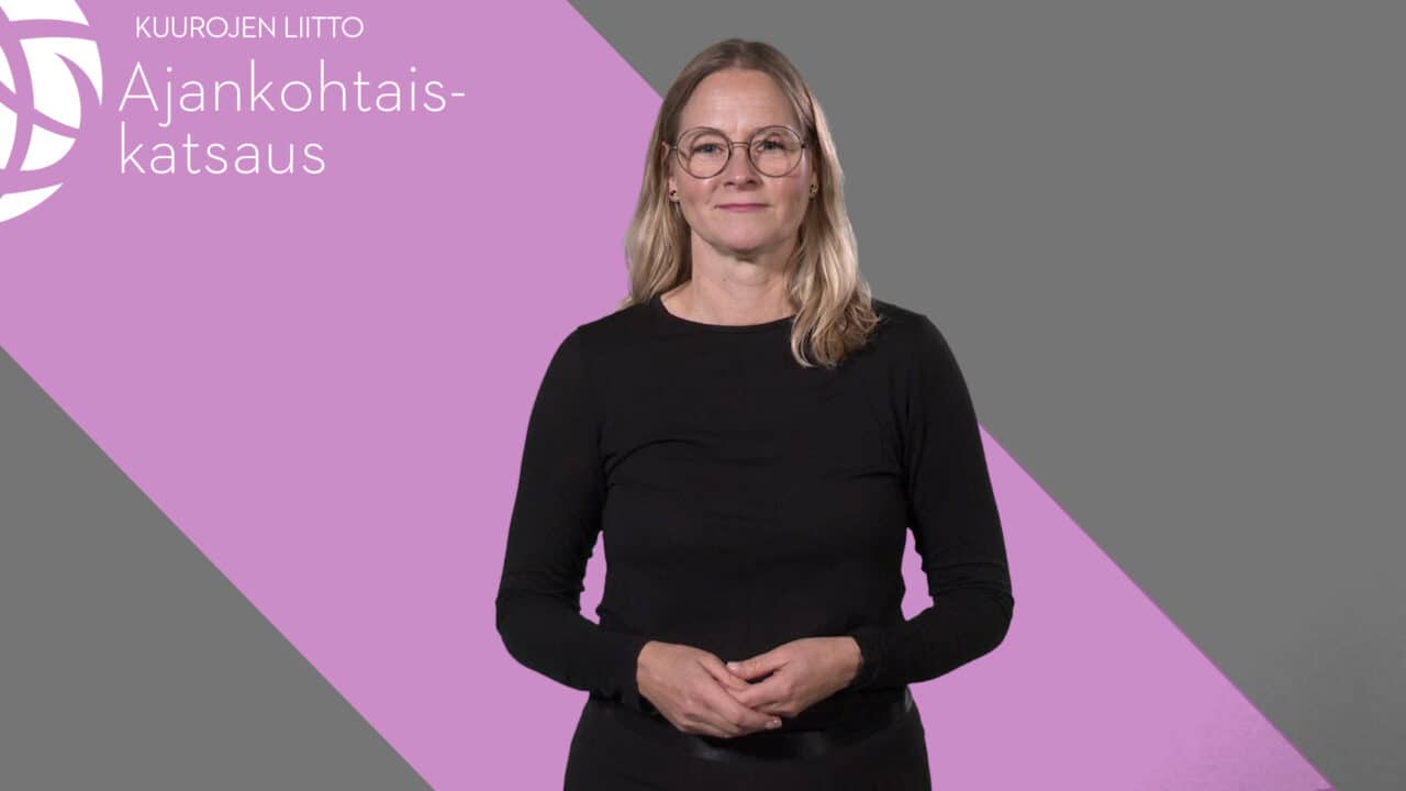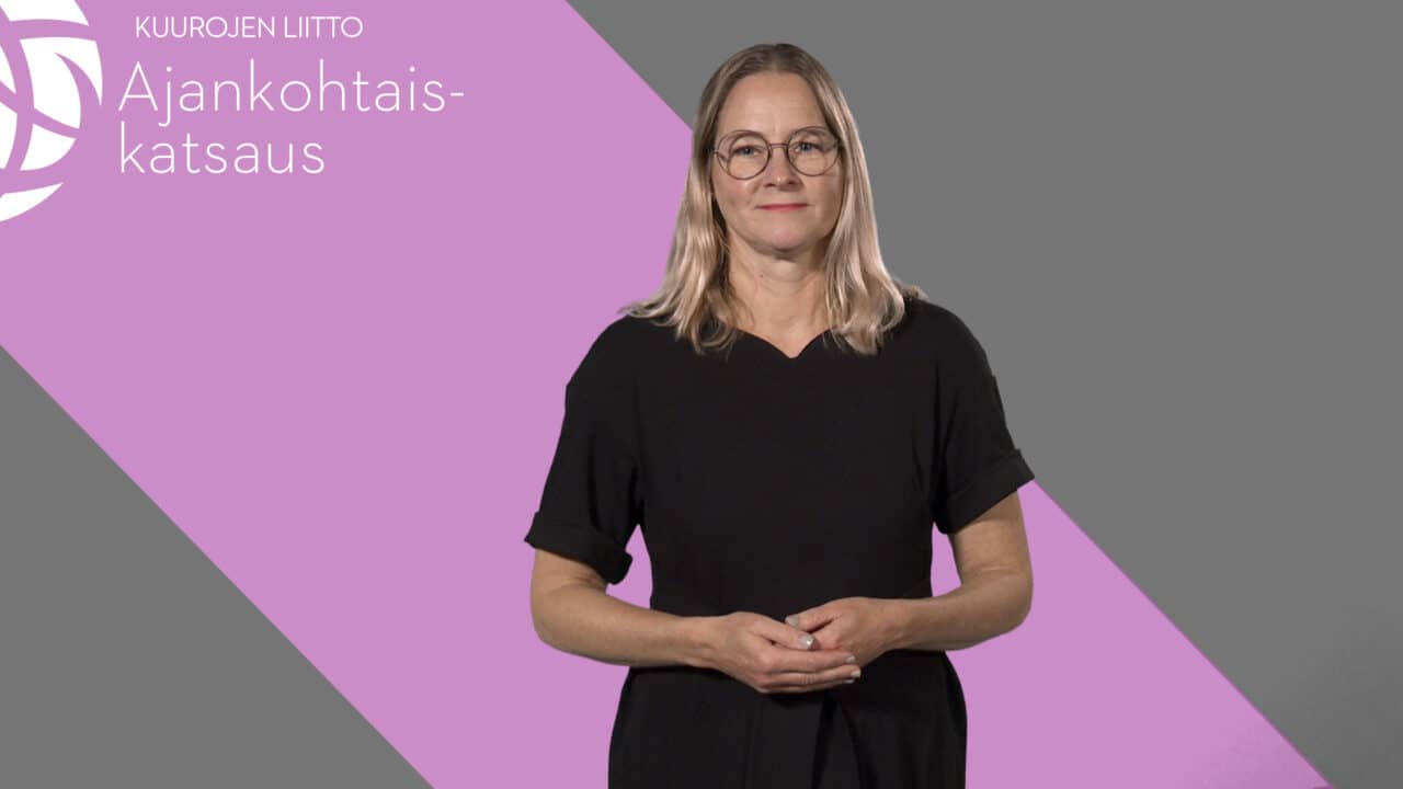 Viikon ajankohtaiskatsauksessa käsitellään kuuroa alue- ja kuntavaltuutettua, totuus- ja sovintoprosessin webinaaria, viittomakieliasioiden neuvottelukunnan lakkautusta, Rivien välissä 5 -tapahtumaa sekä Turun ja Jyväskylän NUPPU-kerhotapaamisia.